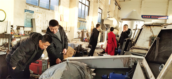 山西平遙客戶蒞臨廣富機械有限公司 考察蒸汽玉米壓片機項目